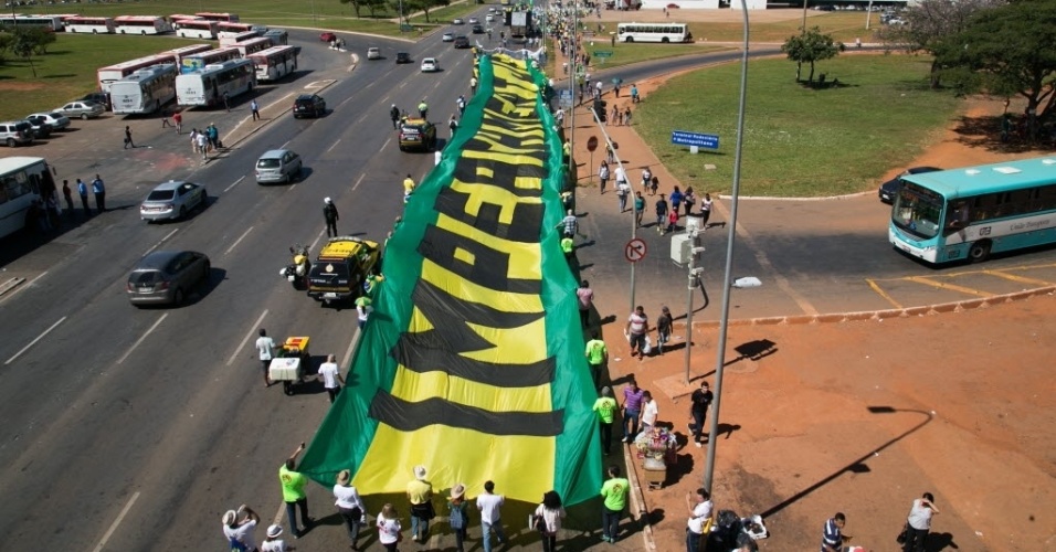 27.mai.2015 - Participantes da Marcha pela Liberdade, caminham na Esplanada dos Ministérios, em direção ao Congresso Nacional