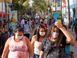A declaração veio após Bolsonaro ser abordado por uma mulher, que disse que só iria tirar fotos com o presidente quando não precisasse mais do acessório. "Tem algum médico aí? A eficácia dessa máscara é quase nula", respondeu o presidente.