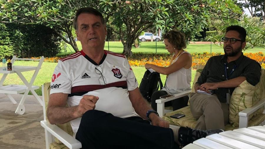 Ele conversou por cerca de uma hora e meia com seis jornalistas. Os profissionais não puderam gravar a conversa e foram orientados a deixar os celulares do lado de fora.